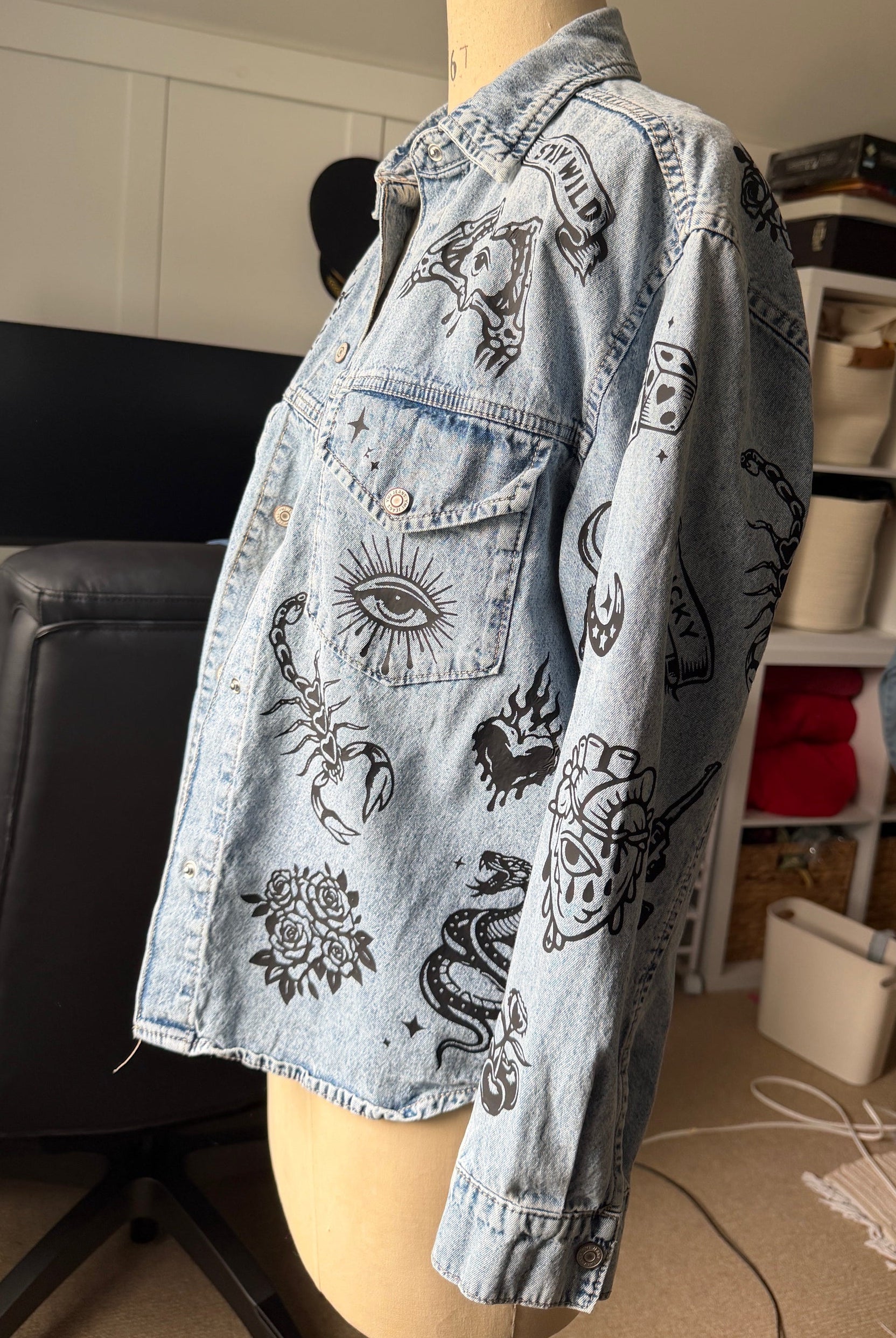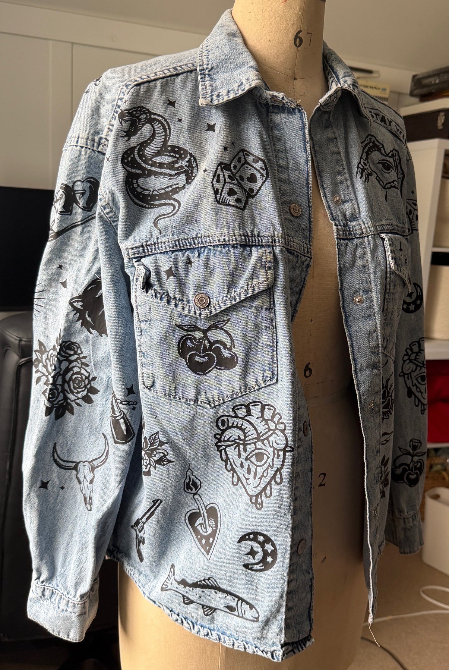 Elevate your style with a unique, custom handmade jacket. Stand out from the crowd with this carefully crafted, one-of-a-kind piece. Each jacket is made with love and attention to detail, ensuring a perfect blend of style and quality.