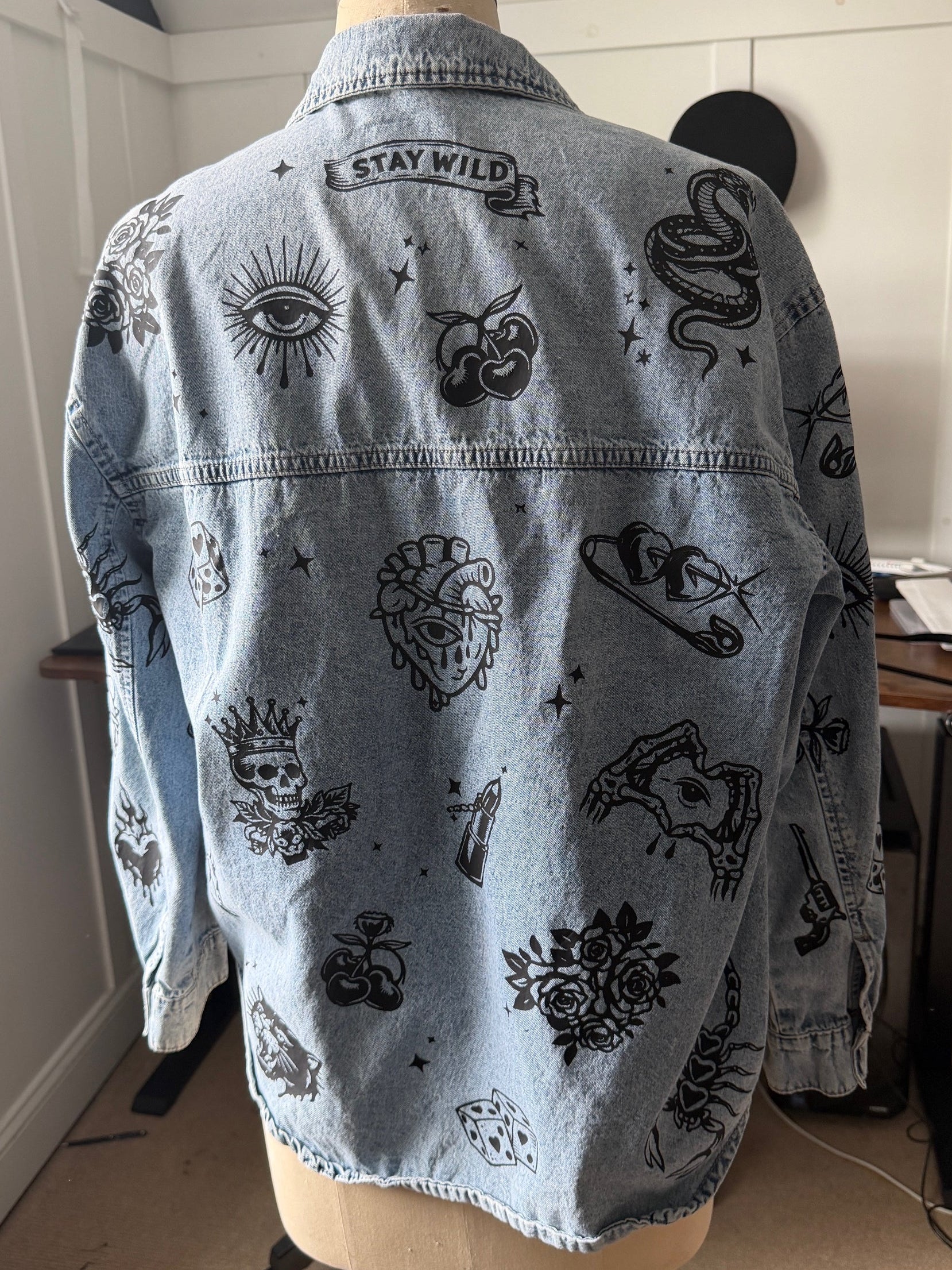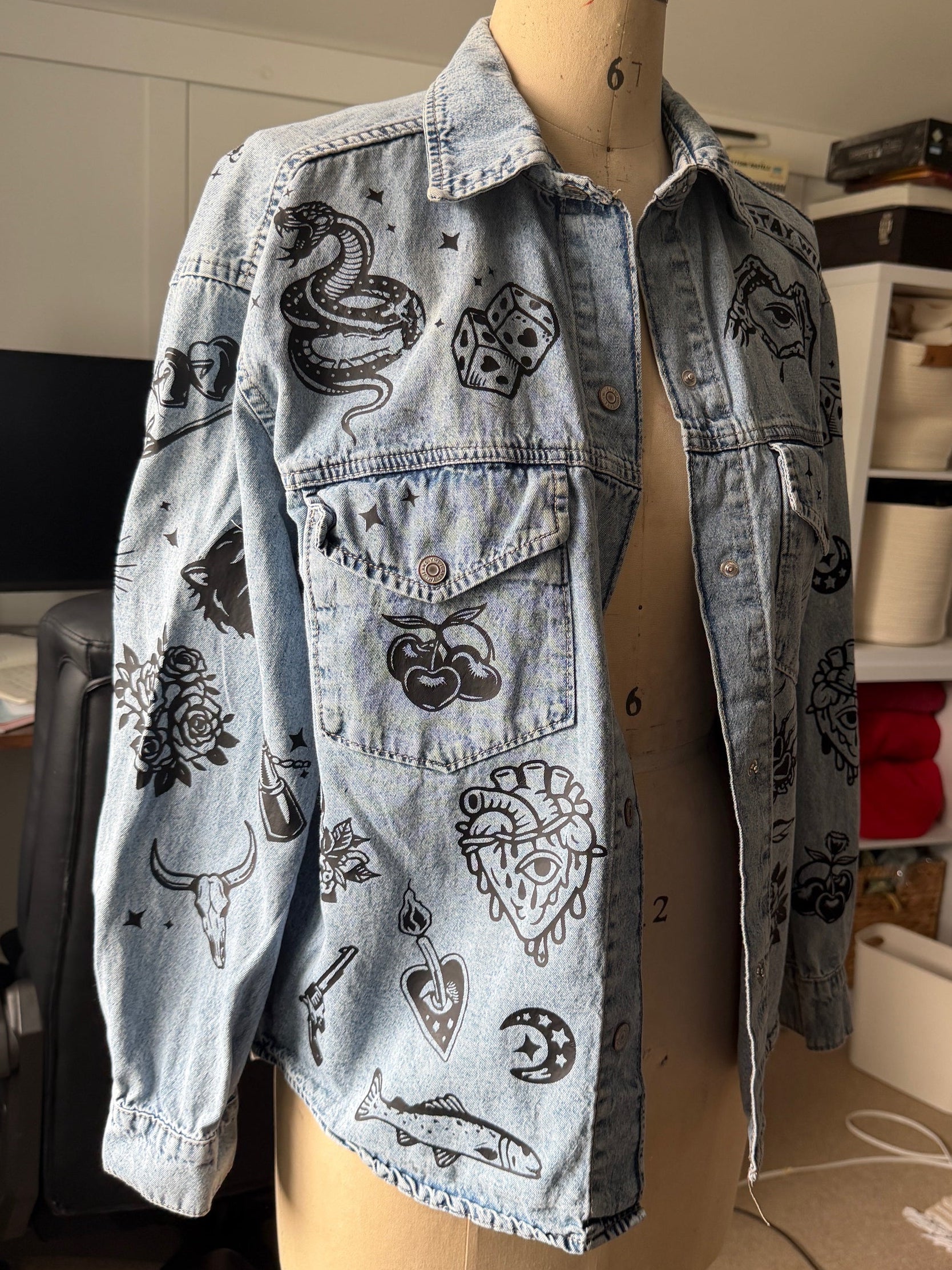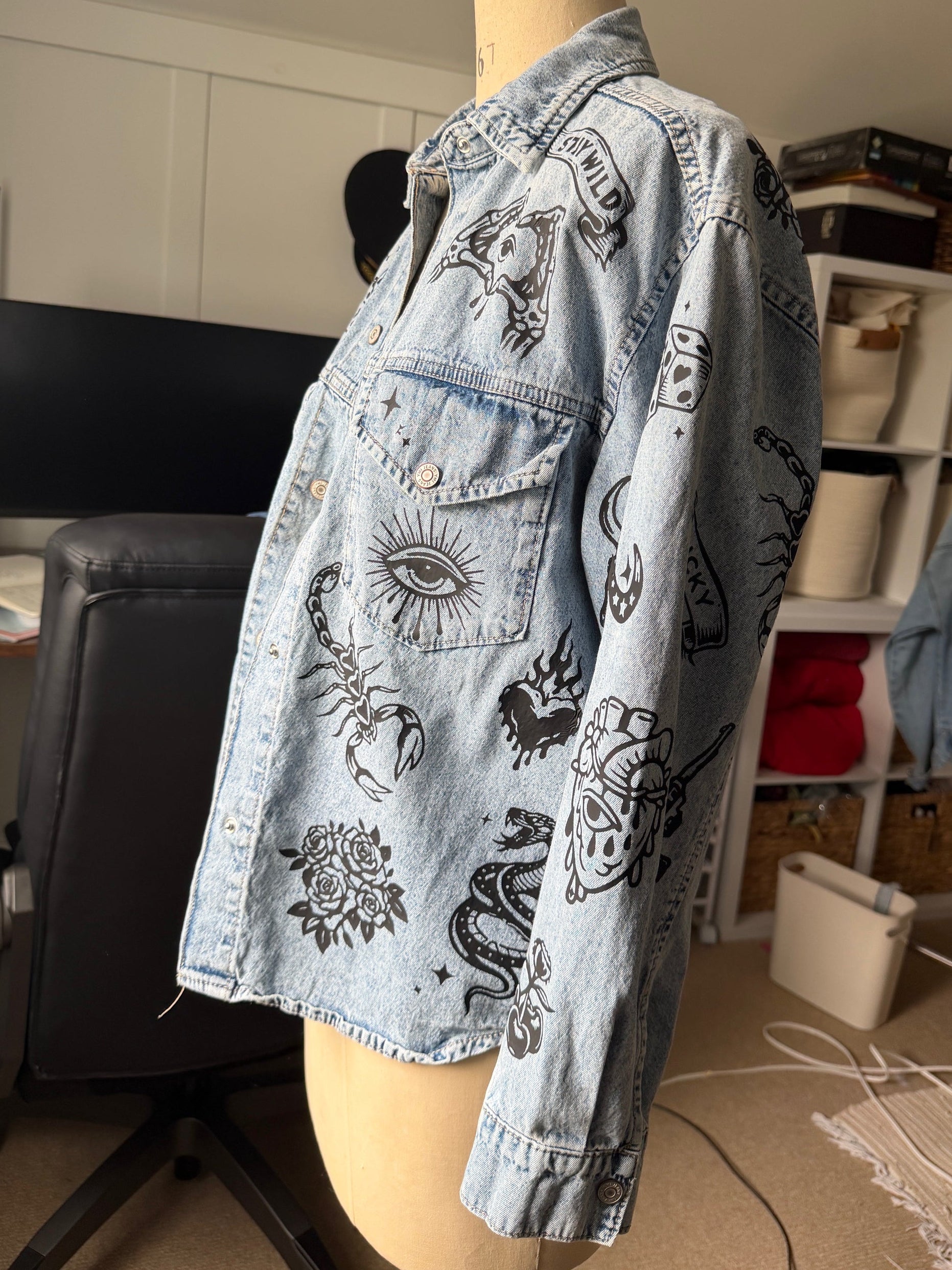 Elevate your style with a unique, custom handmade jacket. Stand out from the crowd with this carefully crafted, one-of-a-kind piece. Each jacket is made with love and attention to detail, ensuring a perfect blend of style and quality.